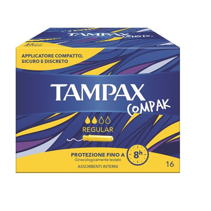 Tampax Compak è un tampone con applicatore in plastica, presa antiscivolo e punta arrotondata.