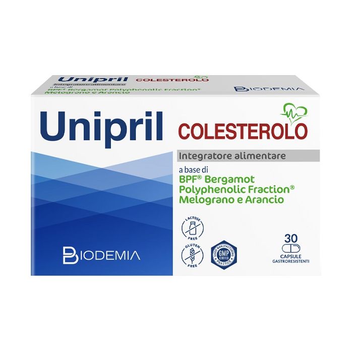 Integratore alimentare a base di BPF Bergamot Polyphenolic Fraction, melograno e arancio, utile per aiutare a ridurre l'assorbimento di colesterolo per via esogena dagli alimenti.